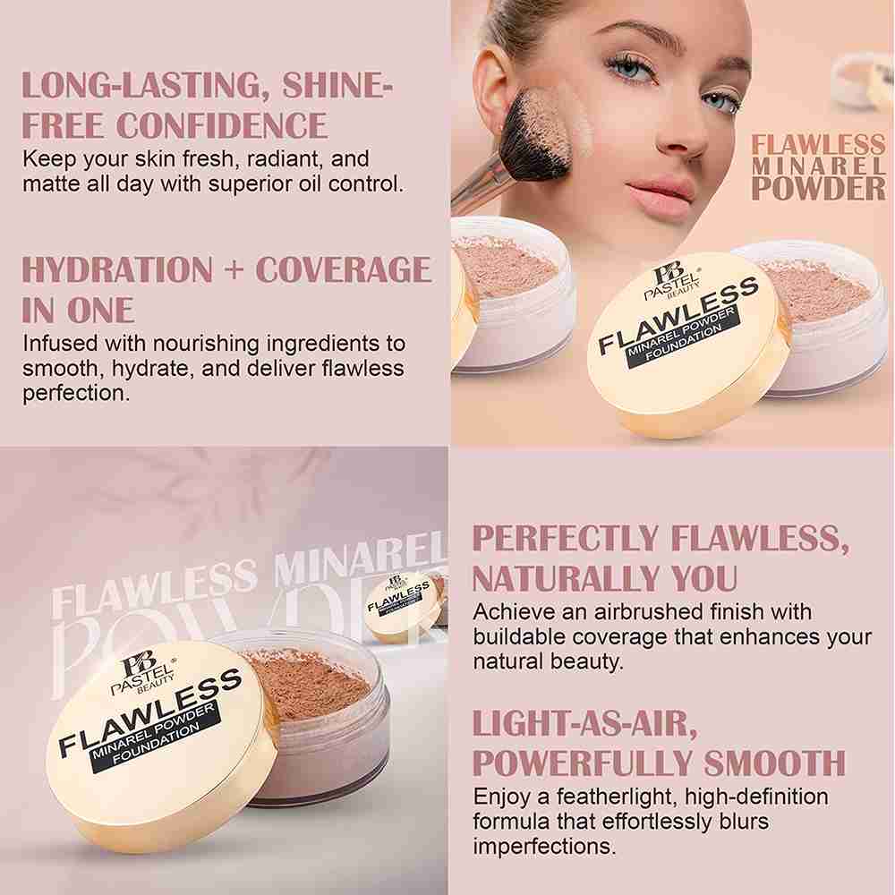 Achieve a flawless, even complexion with Pastel Beauty’s Flawless Mineral Powder Foundation – the perfect solution for a soft, natural, and long-lasting finish.