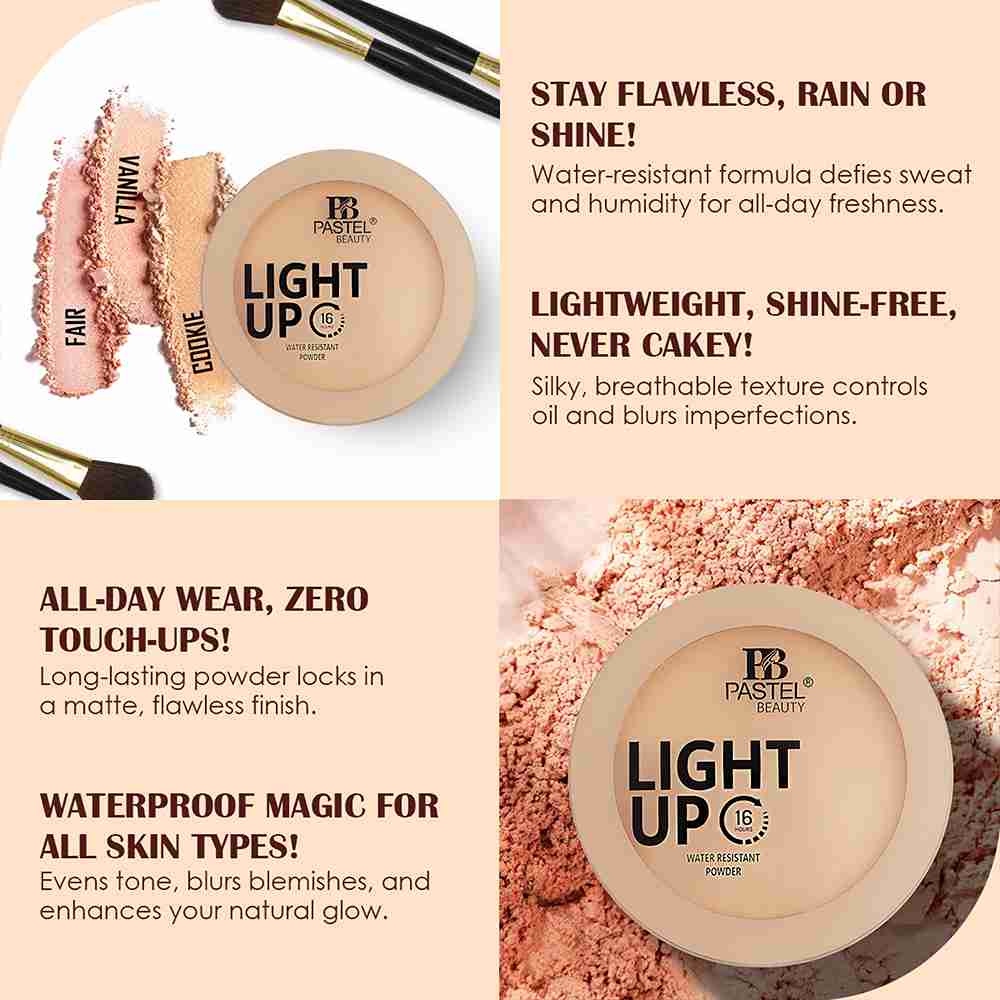 Stay glowing and flawless with Pastel Beauty’s Light Up Water-Resistant Powder—your perfect companion for lasting beauty in any weather!